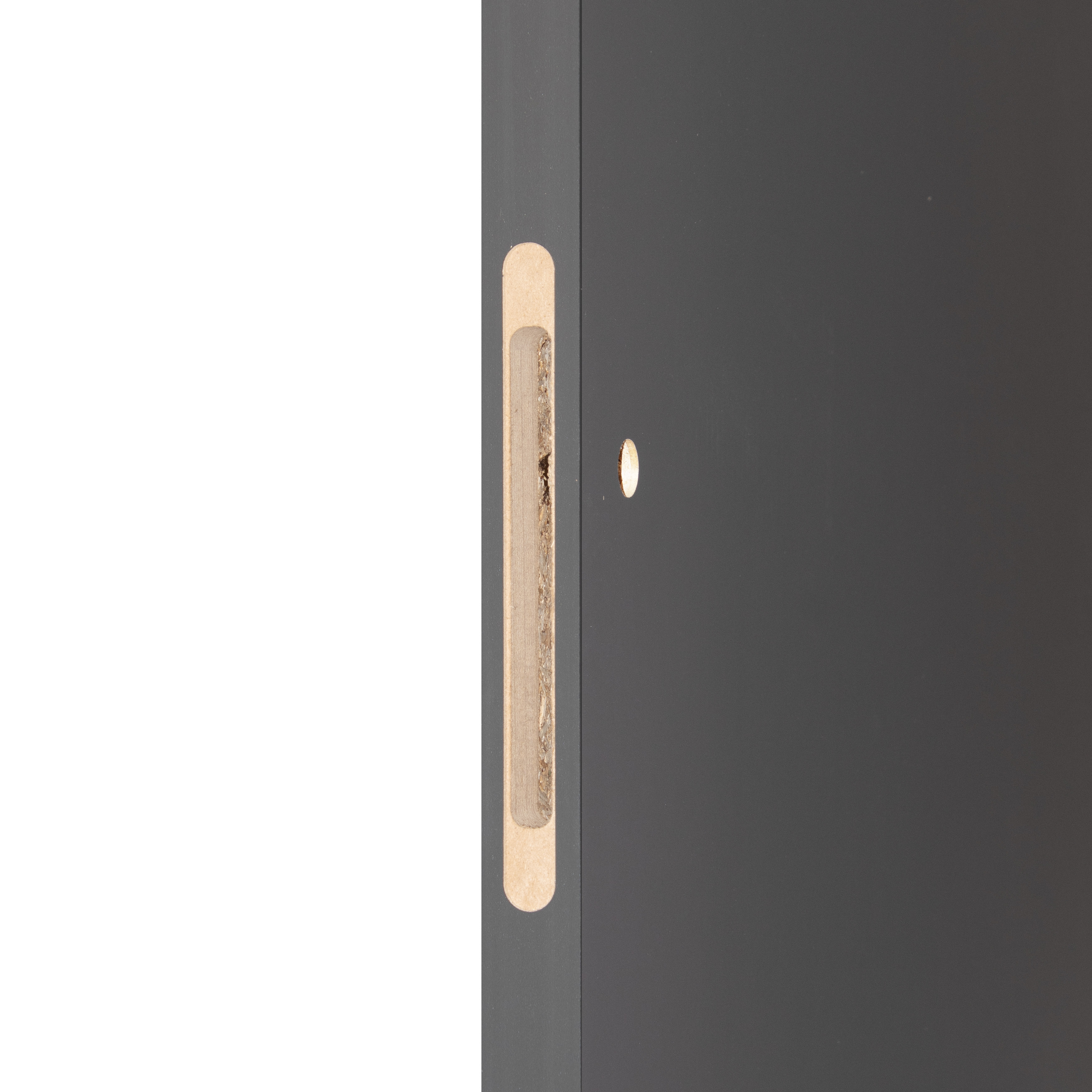 Deze laminaatdeur bestaat uit een MDF-kader met tubespaanstructuur en is afgewerkt met 3 mm HDF-dekplaten. Dankzij de stijlvolle grafietkleurige afwerking heeft de deur geen bijkomende schilderbeurt nodig.