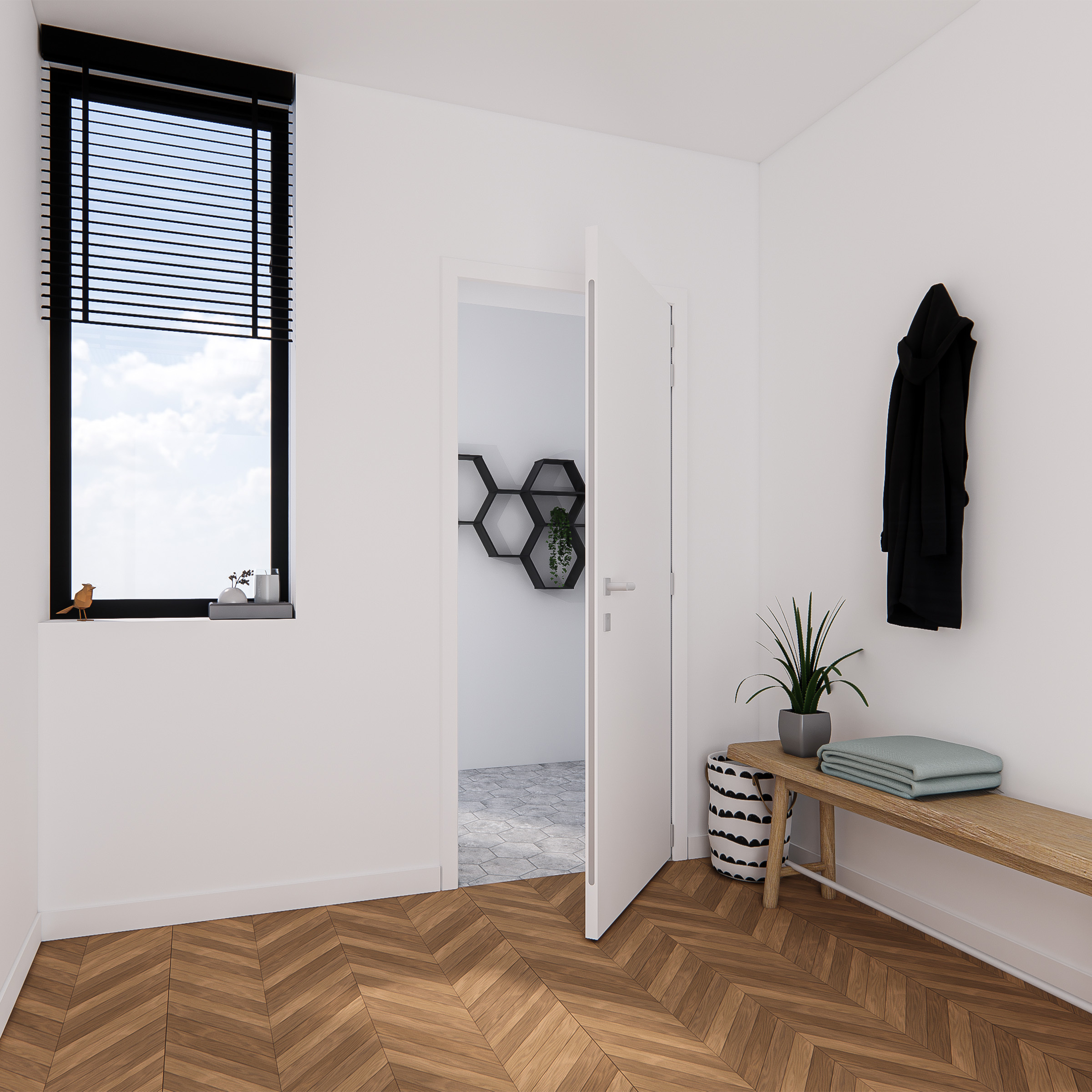 Hinges: 3 pieces pre-milled, opening direction to be defined on site