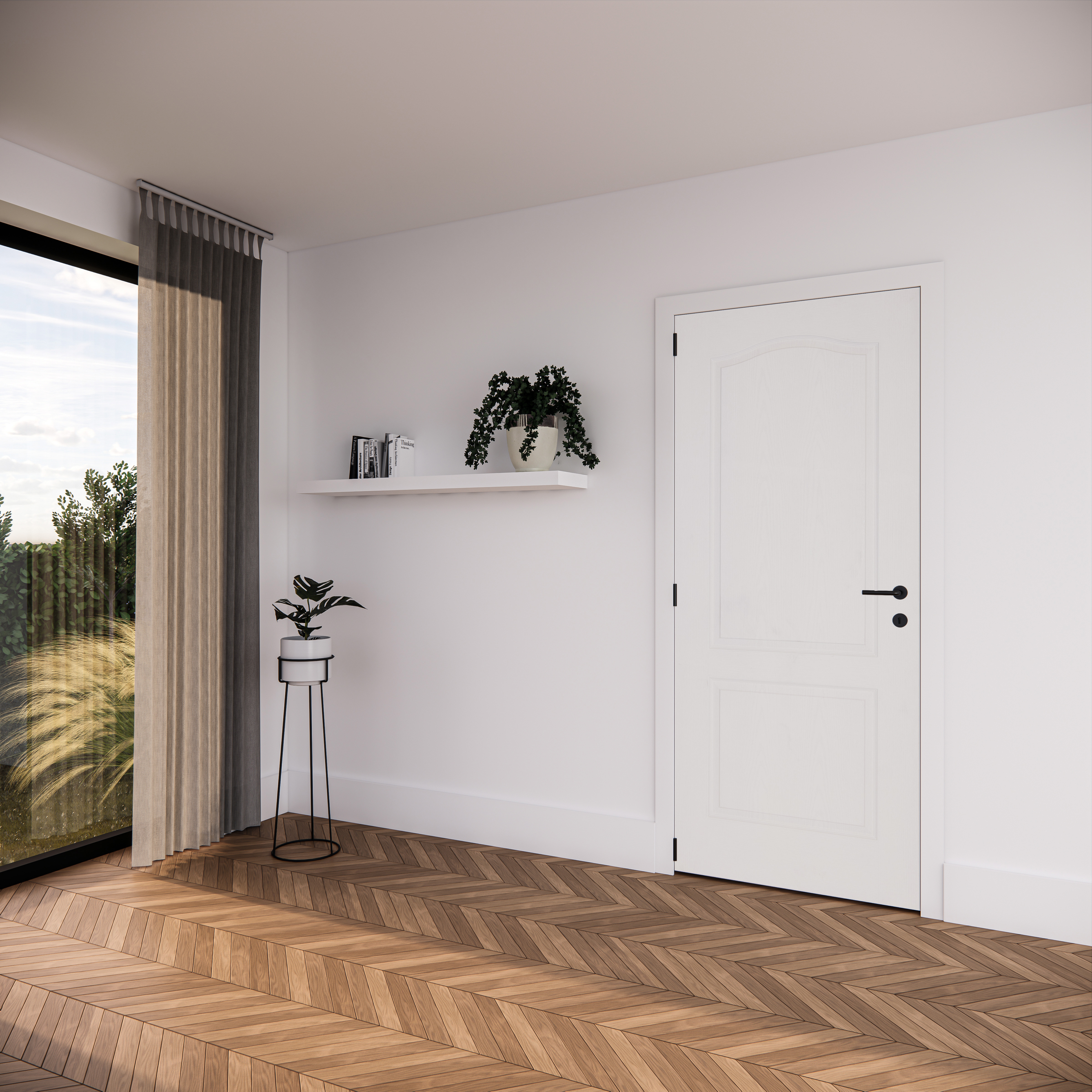 The Levigato M03 is a standard panel door that needs painting, allowing you to fully match the door color to your interior, whether it’s a cottage-style or more modern setting.
