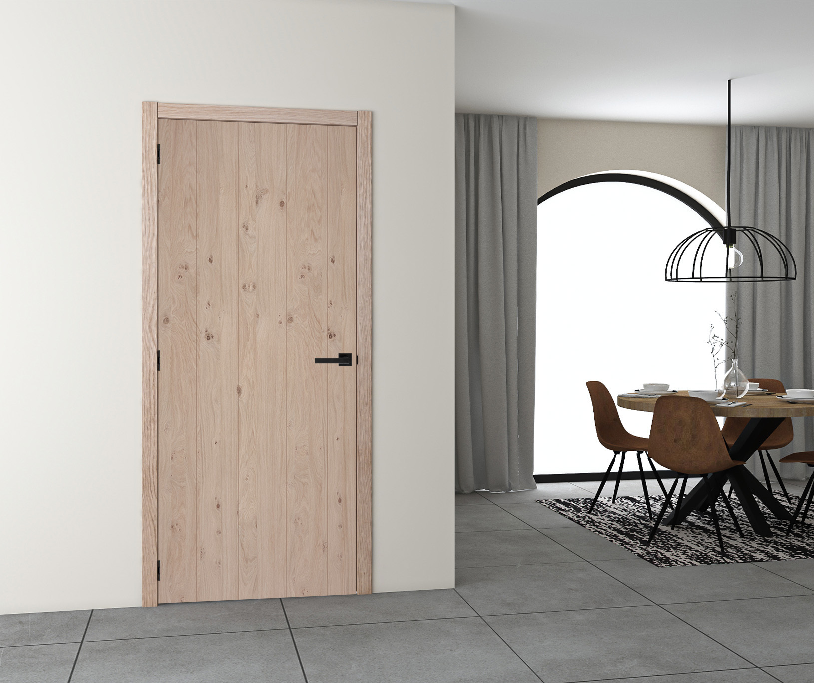 Deze ingekaste fineerdeur in eik met knopen combineert de natuurlijke charme van massief eikenhout met een strak, landelijk design.