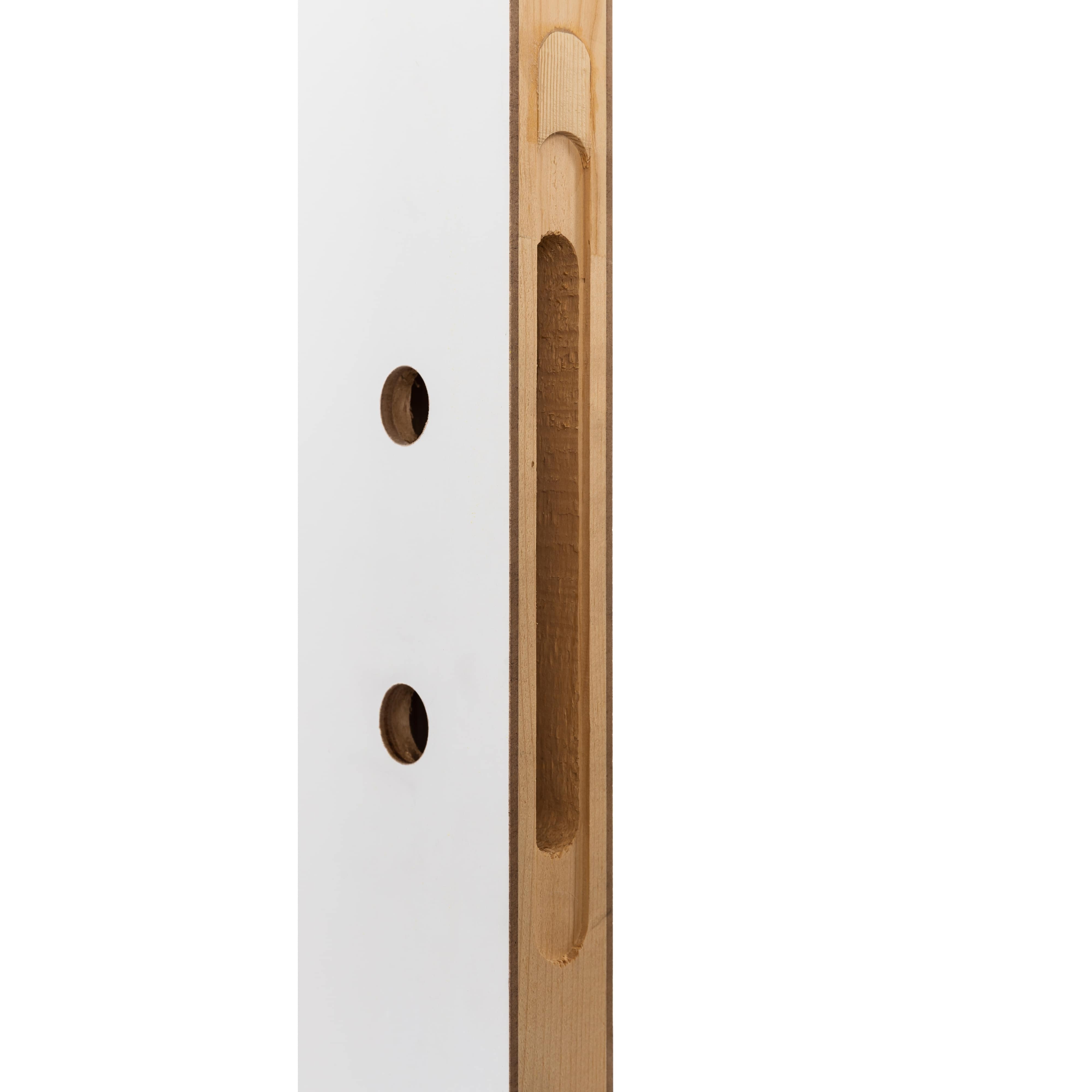 Deze verfdeur is opgebouwd uit een kader in dennenhout met een tubespaanstructuur, verstevigd aan het slot. Tubespaandeuren hebben een stevige kern van spaanderplaat met luchtkanalen. Dit zorgt ervoor dat ze akoestisch beter zijn en een betere isolatiewaarde hebben. De deurhoogte is 2015 mm en de dikte 40 mm.