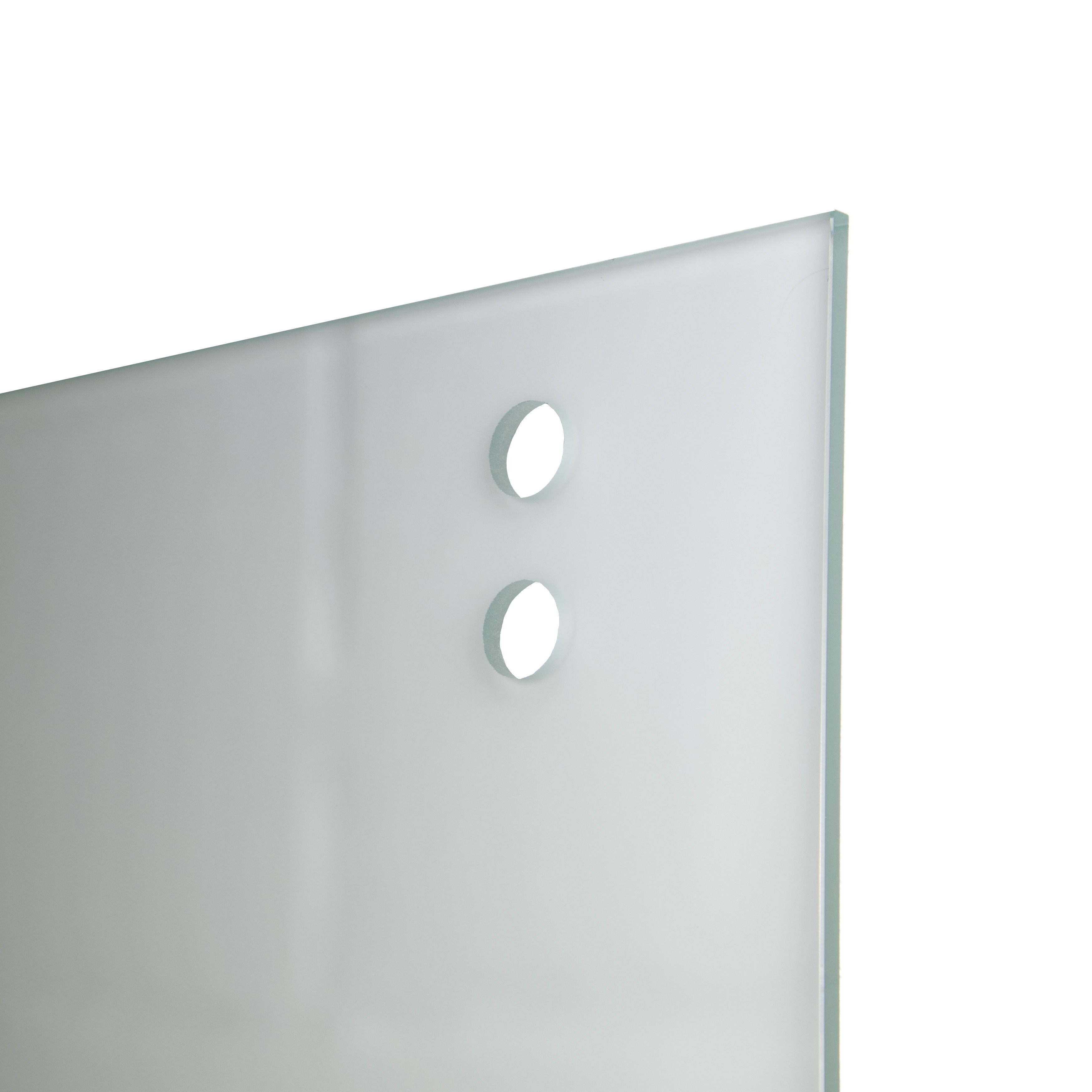 Het deurblad is vervaardigd in mat, verzuurd, gehard veiligheidsglas met afgeschuinde zijkanten. Het blad beschikt over 2 voorgeboorde gaten voor de ophanging en 2 voorgeboorde gaten voor de trekker.