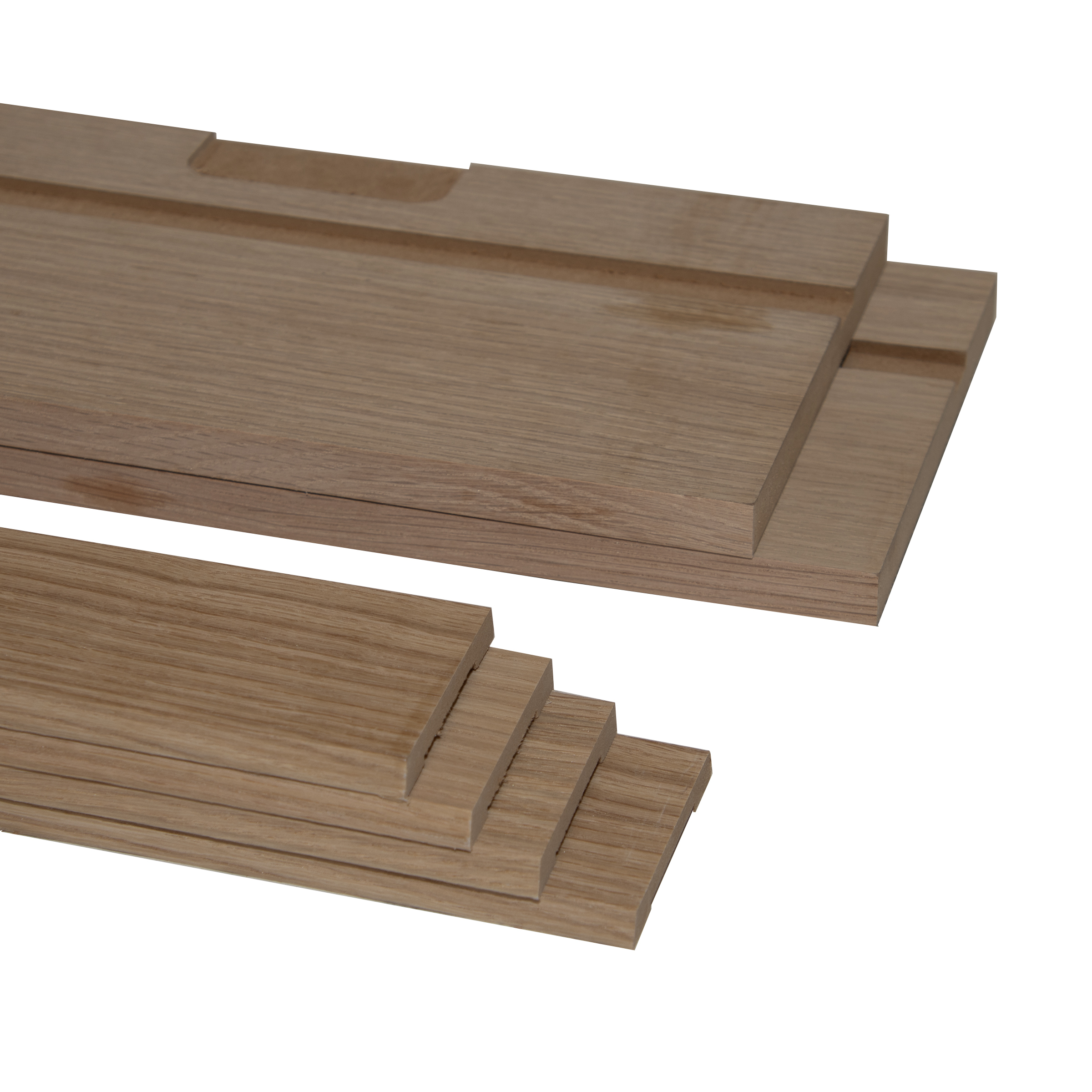 De deurlijsten zijn opgebouwd uit MDF eik fineer. Deze MDF deurset is onbehandeld en moet dus nog geolied worden.