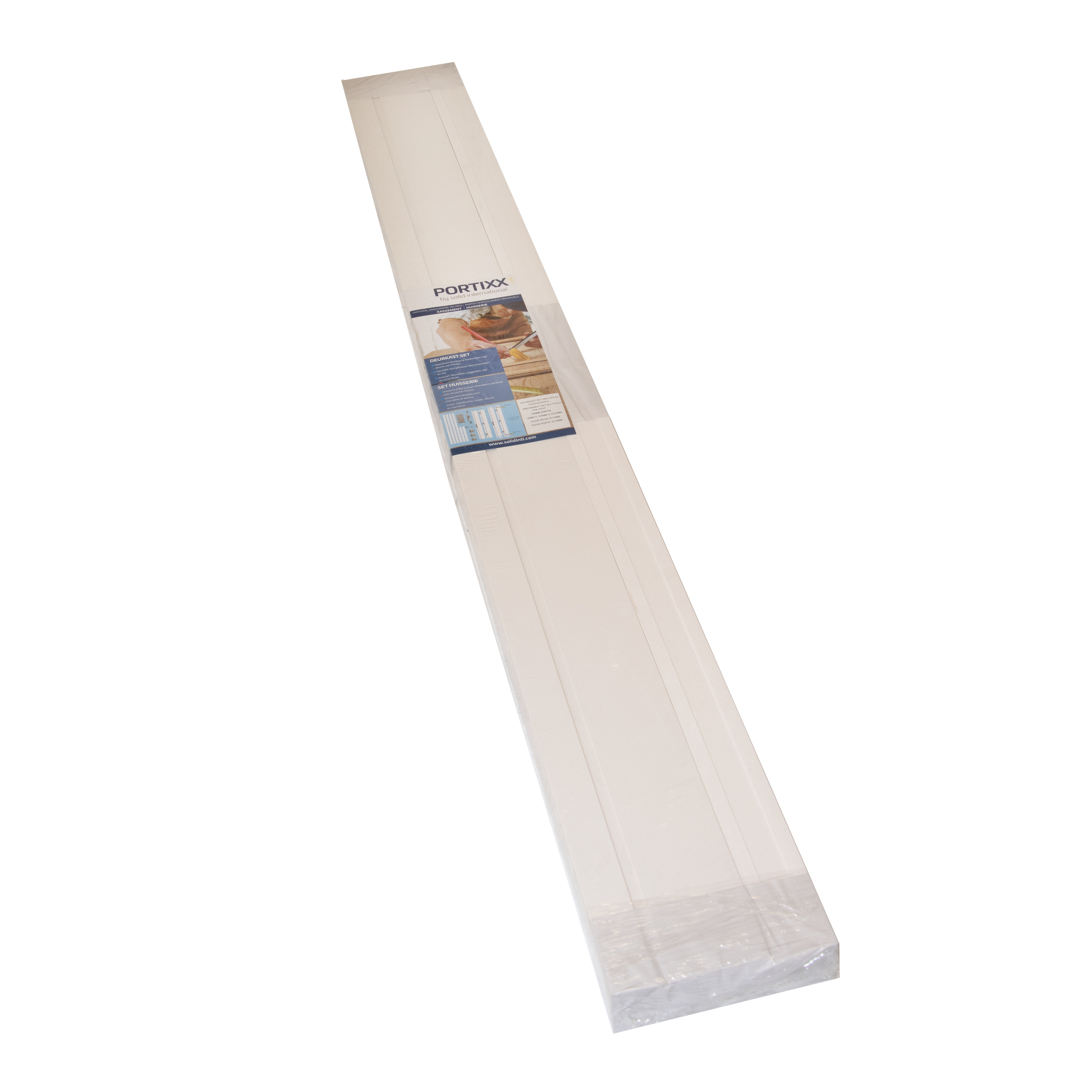 De deurset Multiplex (MPX) voorgeverfd bevat een deurkast, deurlijsten, slaglatten en deurbeslag (slot en omkeerbare deurscharnieren).