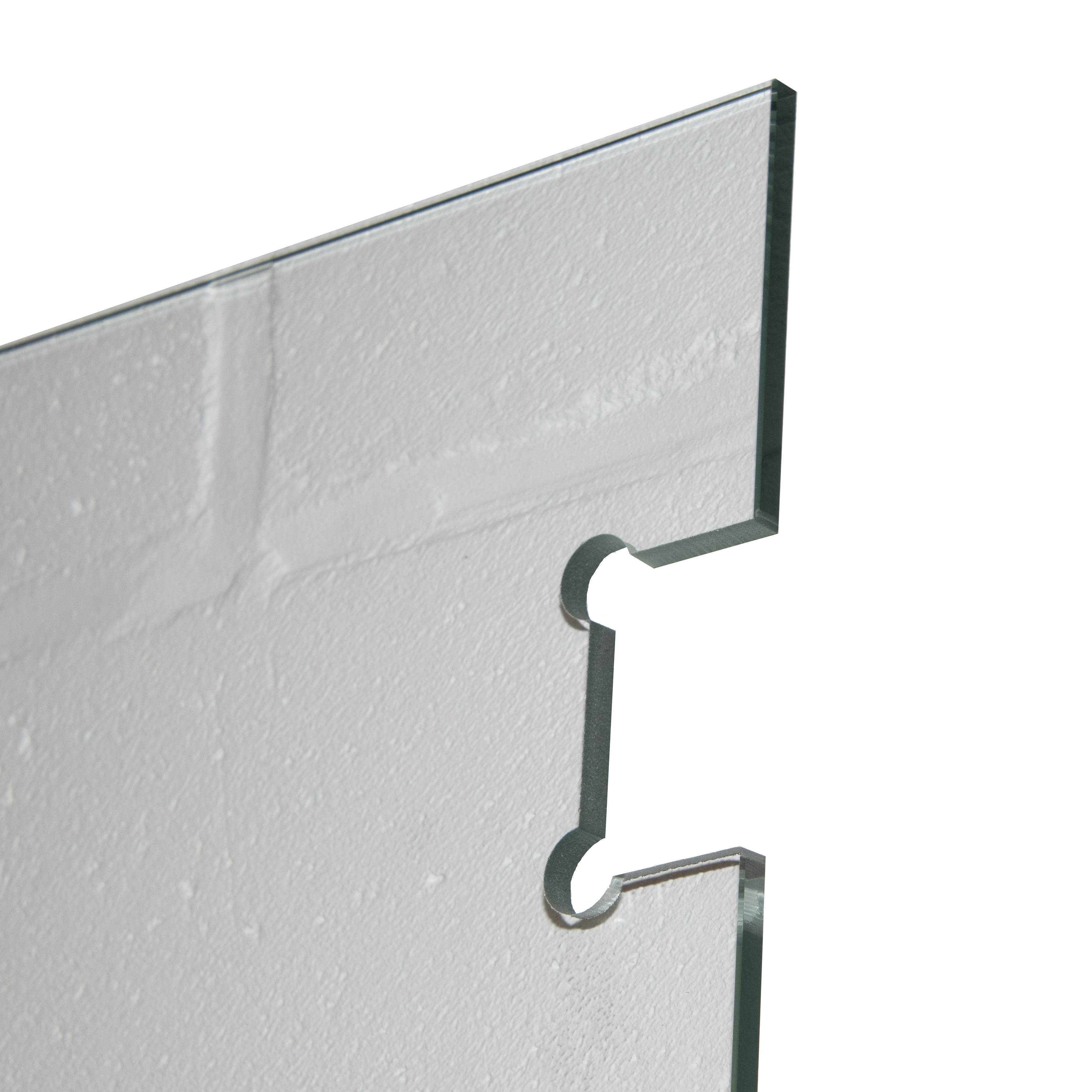 Het glazen deurblad is voorzien van gehard veiligheidsglas met afgeschuinde zijkanten. Het beslag voor glas bestaat uit twee voorgeboorde scharnieren en twee voorgeboorde gaten voor een trekker. De bijhorende deurtrekkers en scharnieren zijn beschikbaar in 4 kleuren.