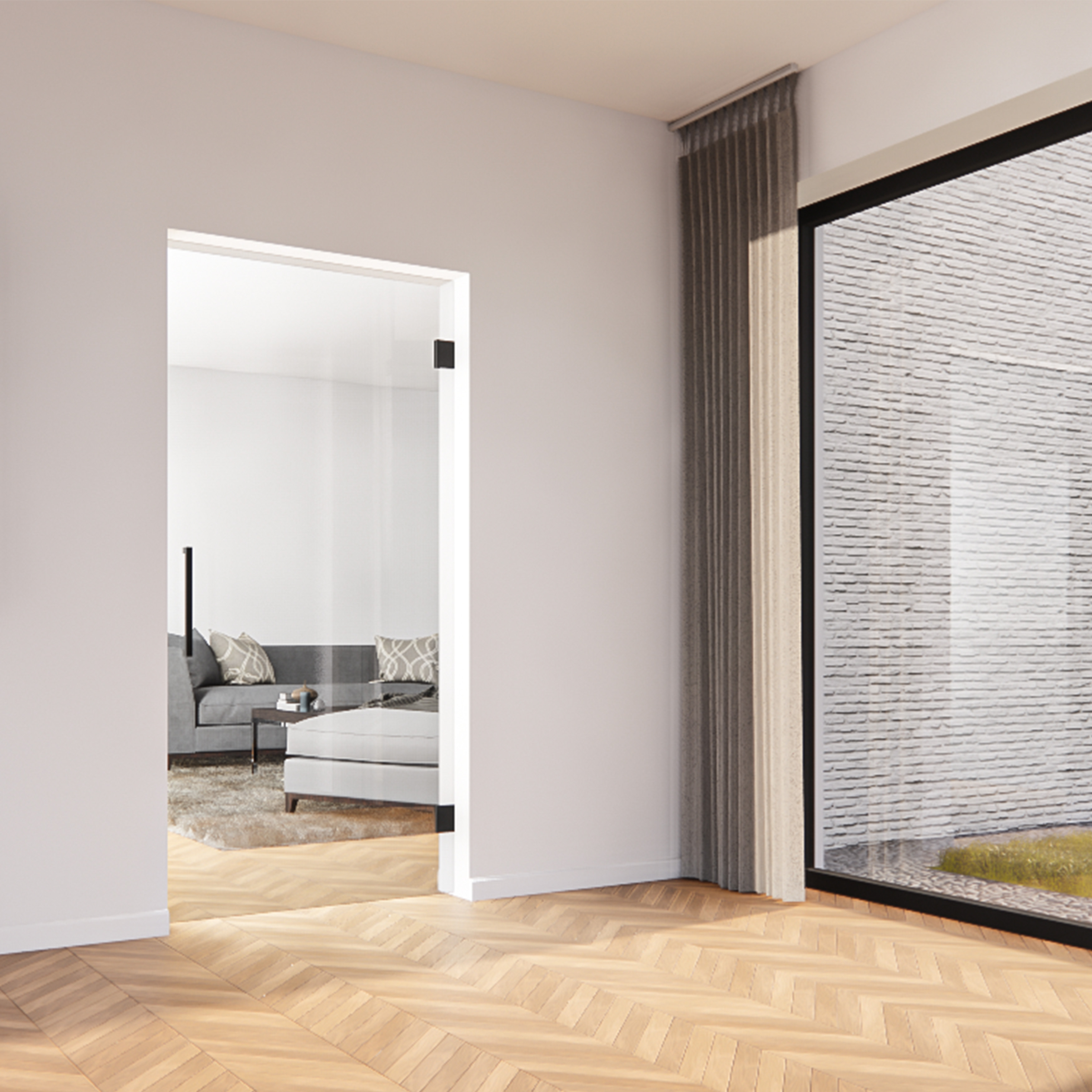 Deze doorslaande binnendeuren met helder glas zijn geschikt voor een standaard deuropening van 2050 mm en 2150 mm. De C000 heldere glazen deur kan ook als dubbele deur geïnstalleerd worden.