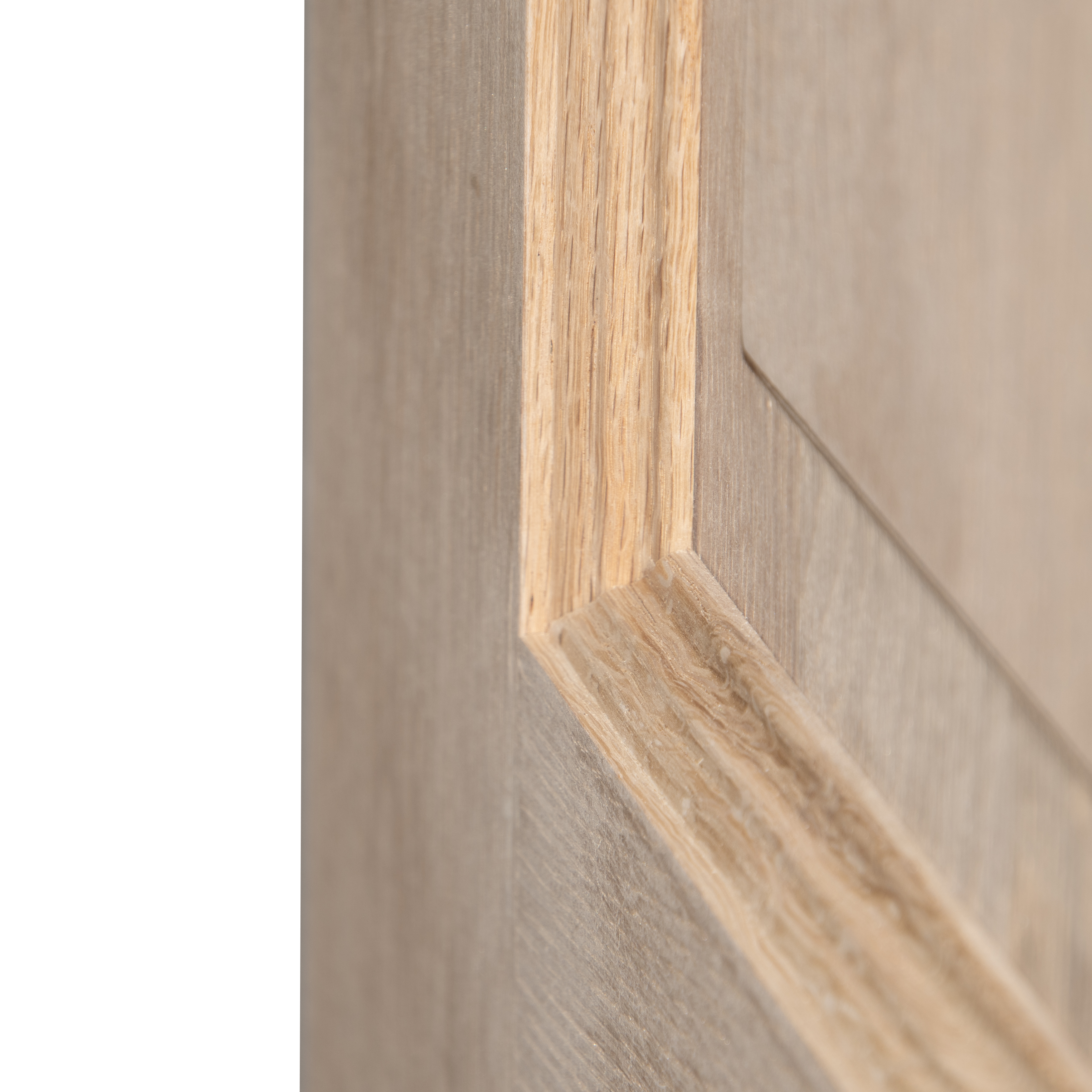 De panelen zijn massief samengestelde eik. De mouluren en kantlatten zijn gemaakt van massief eik.