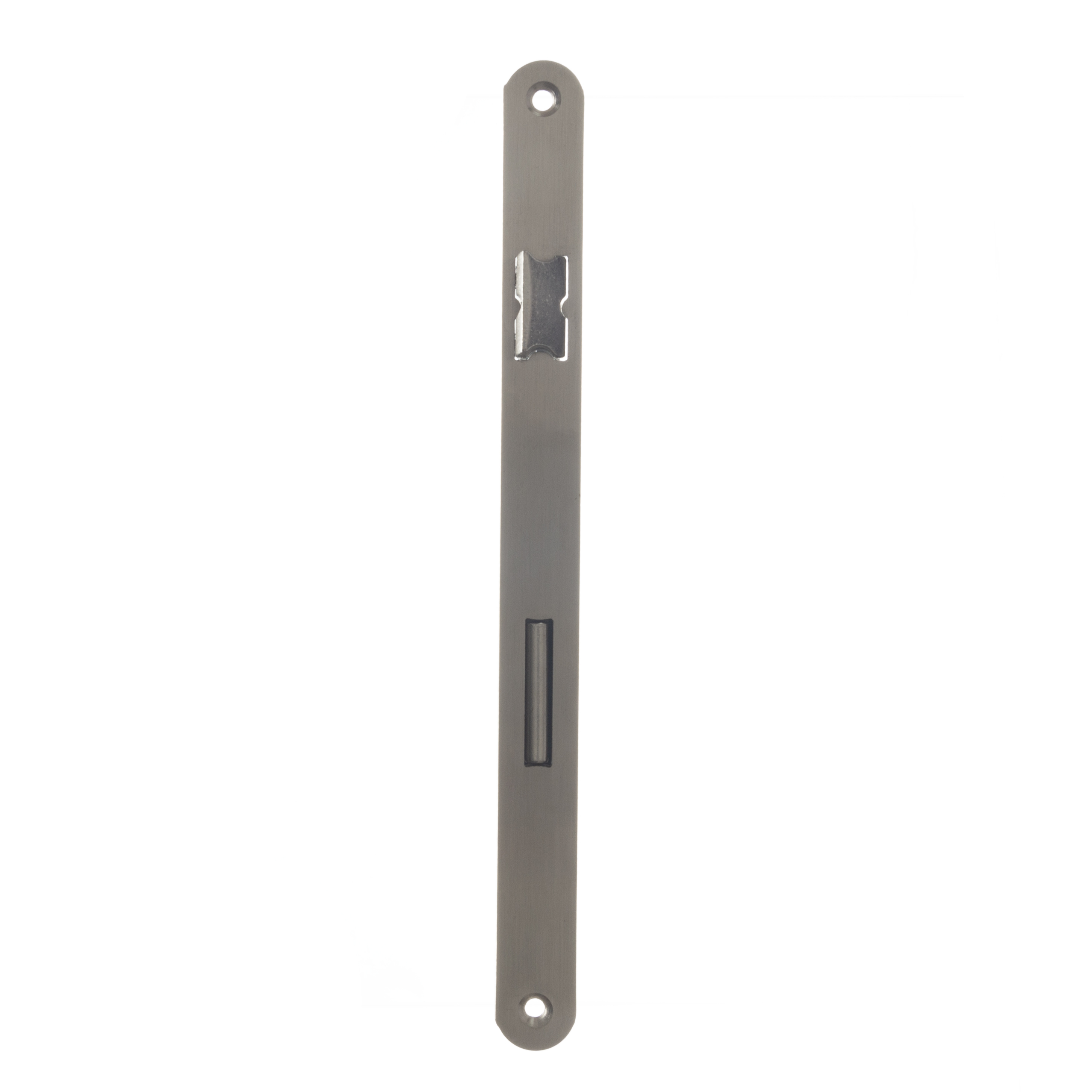 Het klavierslot heeft een asafstand van 90 mm en een doornmaat van 50 mm, met een afgeronde voorplaat. Het kruk- en sleutelgat zijn voorzien van patentgaten, en het slot wordt geleverd met een inox sluitplaat. Dit slot is geschikt voor zowel links- als rechtsdraaiende deuren.