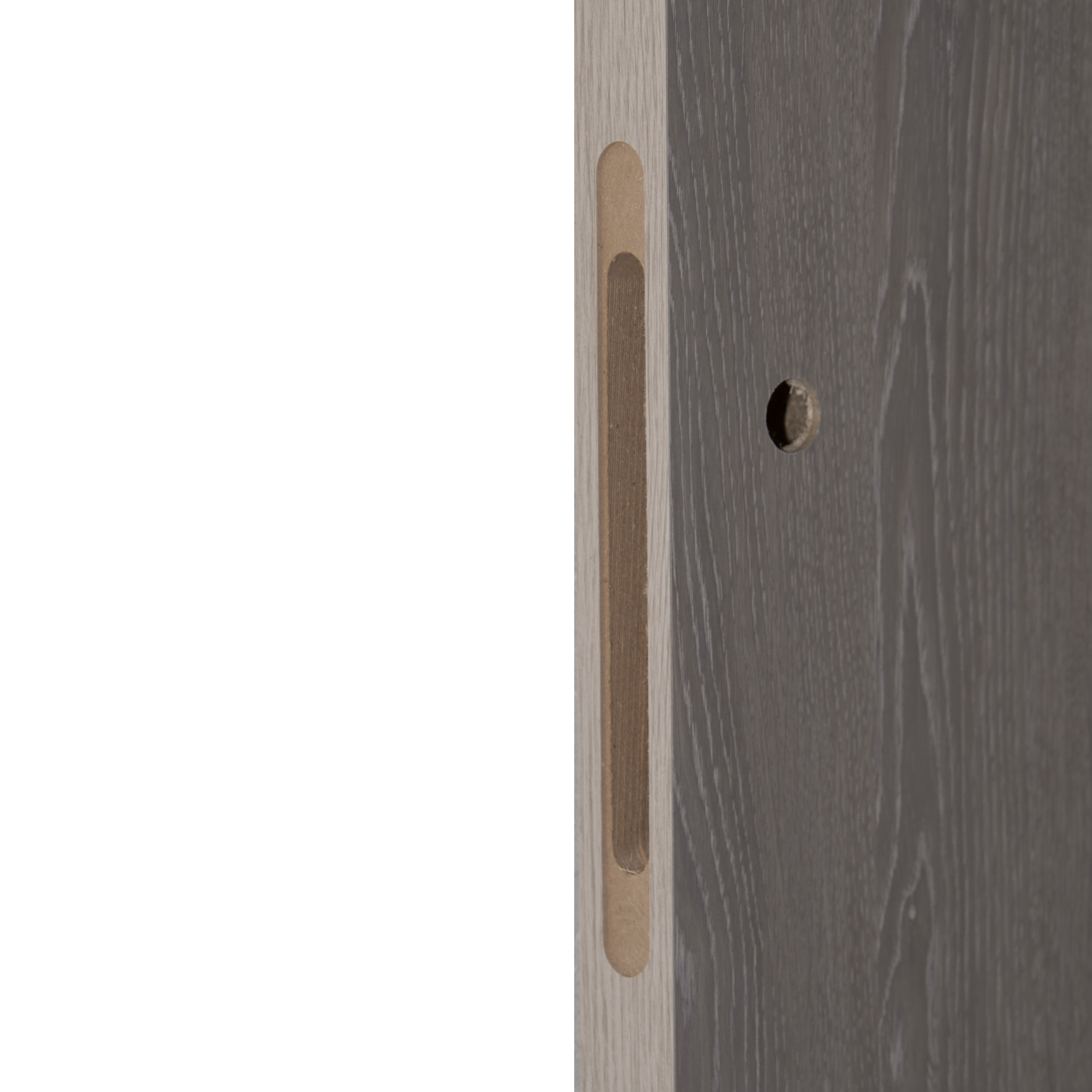 De plaatsklare Urban Grey Oak binnendeuren zijn verticaal omkeerbaar, wat betekent dat je de draairichting pas op het laatste moment hoeft te bepalen. De scharnieren, het slot en de sluitplaat zijn al voorgefreesd, en het krukgat is voorgeboord, maar het sleutelgat niet.